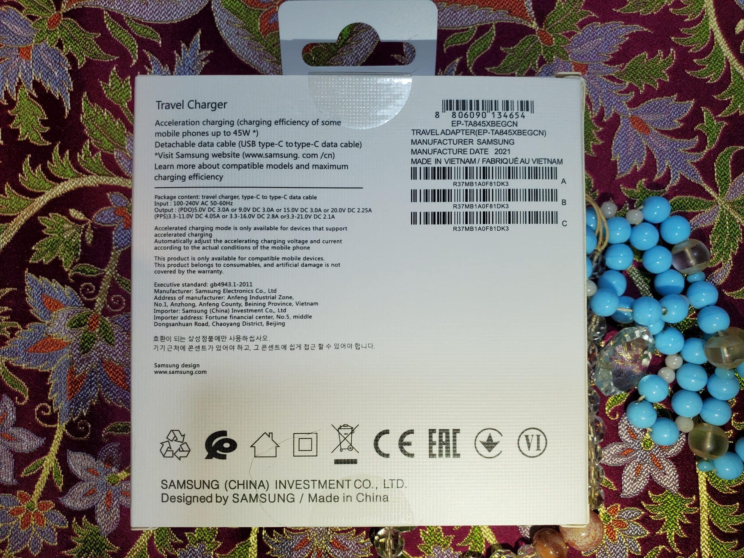 დამატებითი მოწყობილობები თავსებადი დატენვის დაბალი სიჩქარით 45 ვტ ადაპტერს ასევე შეუძლია სხვა Galaxy მოწყობილობების დატენვა 15 ვტ ან უფრო დაბალი სიმძლავრით, რაც უზრუნველყოფს უსაფრთხო და ეფექტურ დატენვას მთელი რიგი პროდუქტებისთვის. მომავალი თავსებადი მოწყობილობები მომავალში გამოშვებულმა დამატებითმა მოდელებმა შეიძლება ასევე მხარი დაუჭიროს დატენვის ამ სპეციფიკაციებს, რადგან Samsung აგრძელებს თავისი პროდუქციის ხაზის განვითარებას.| 5 |